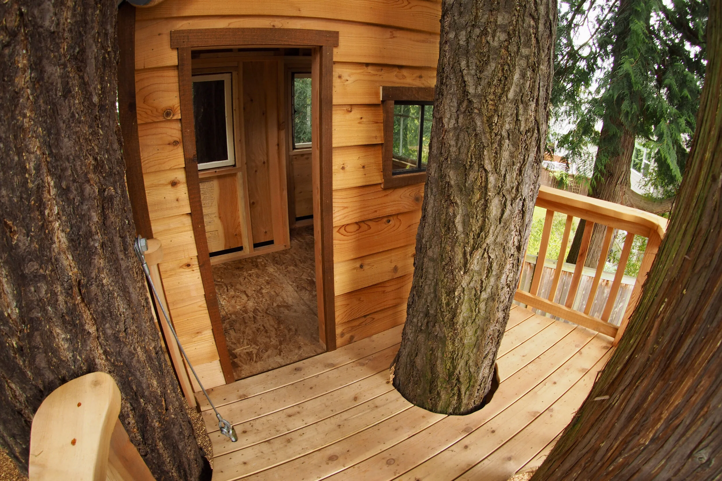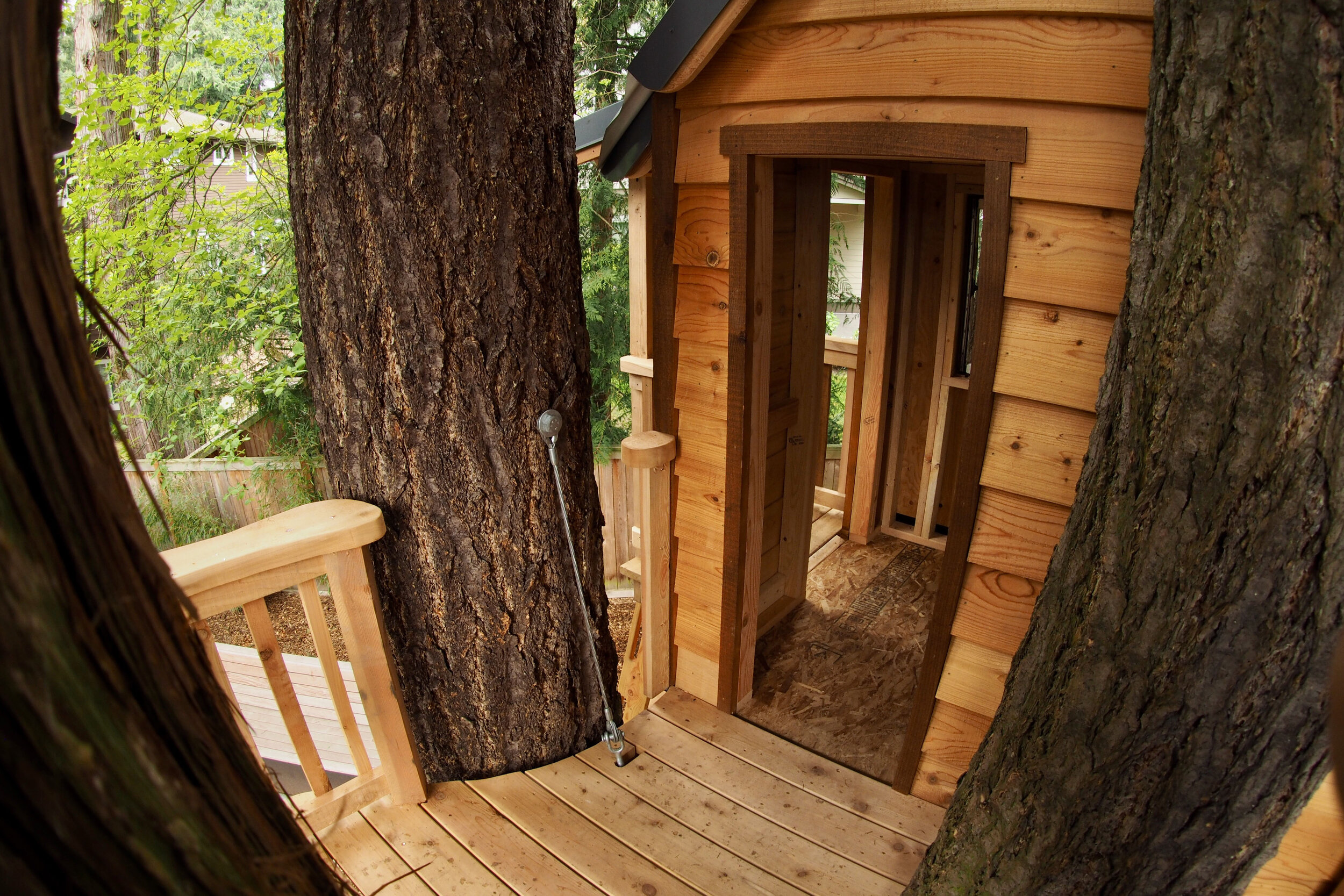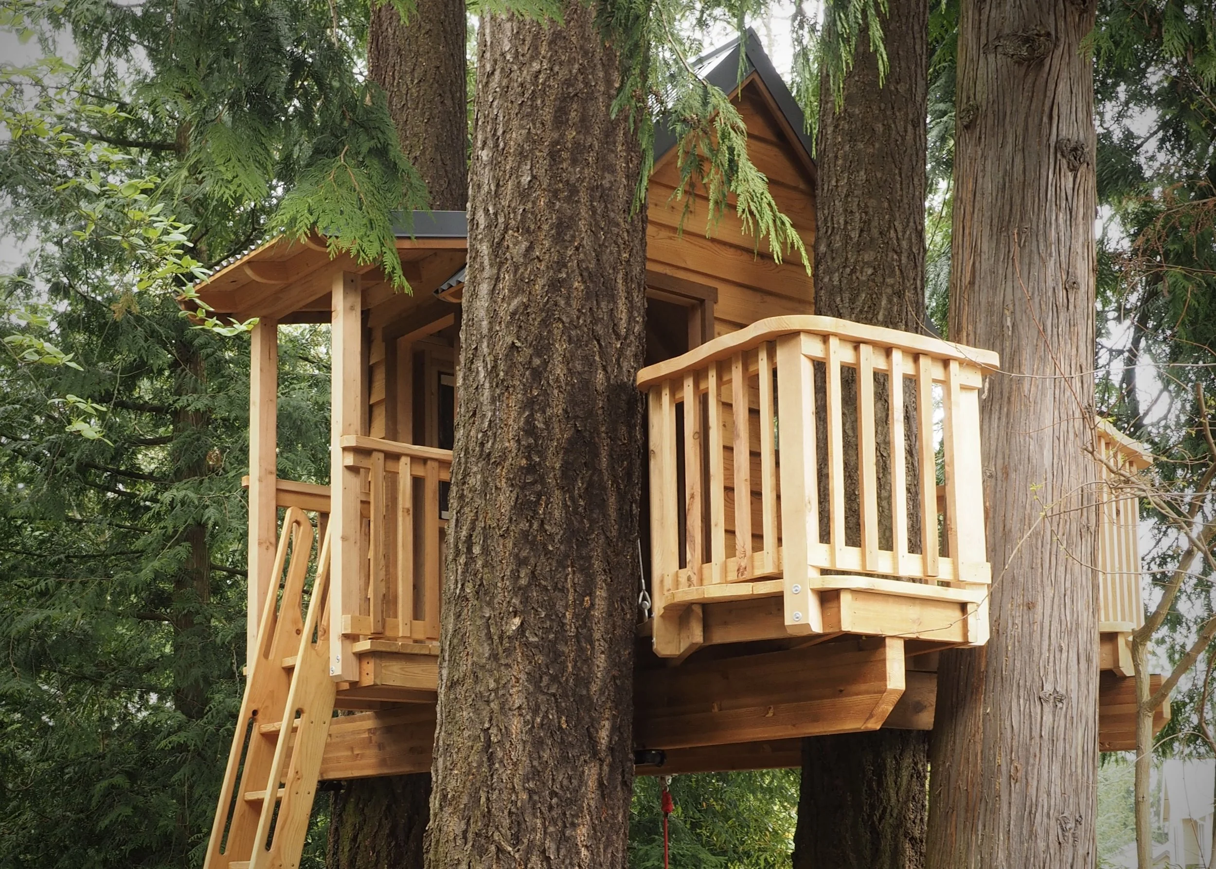 Reflecting on the final product, David commented that the treehouse is so small compared to the enormity of the trees that it looks like it is tucked into the forest — a natural “hide & seek” experience. It looks different from every angle. David and his crew were pleased with the project, happy that the family is able to enjoy their treehouse as they had dreamed it.