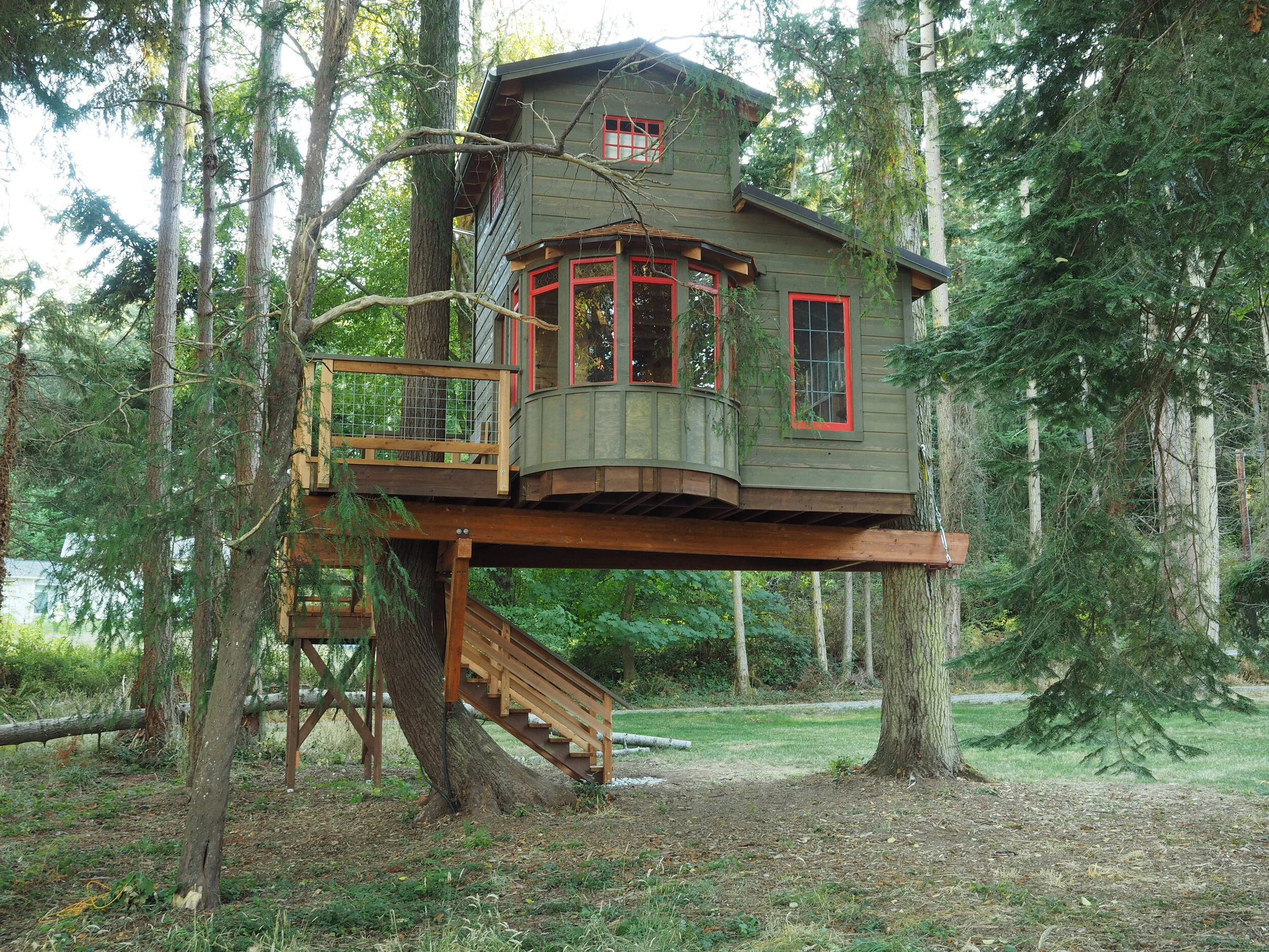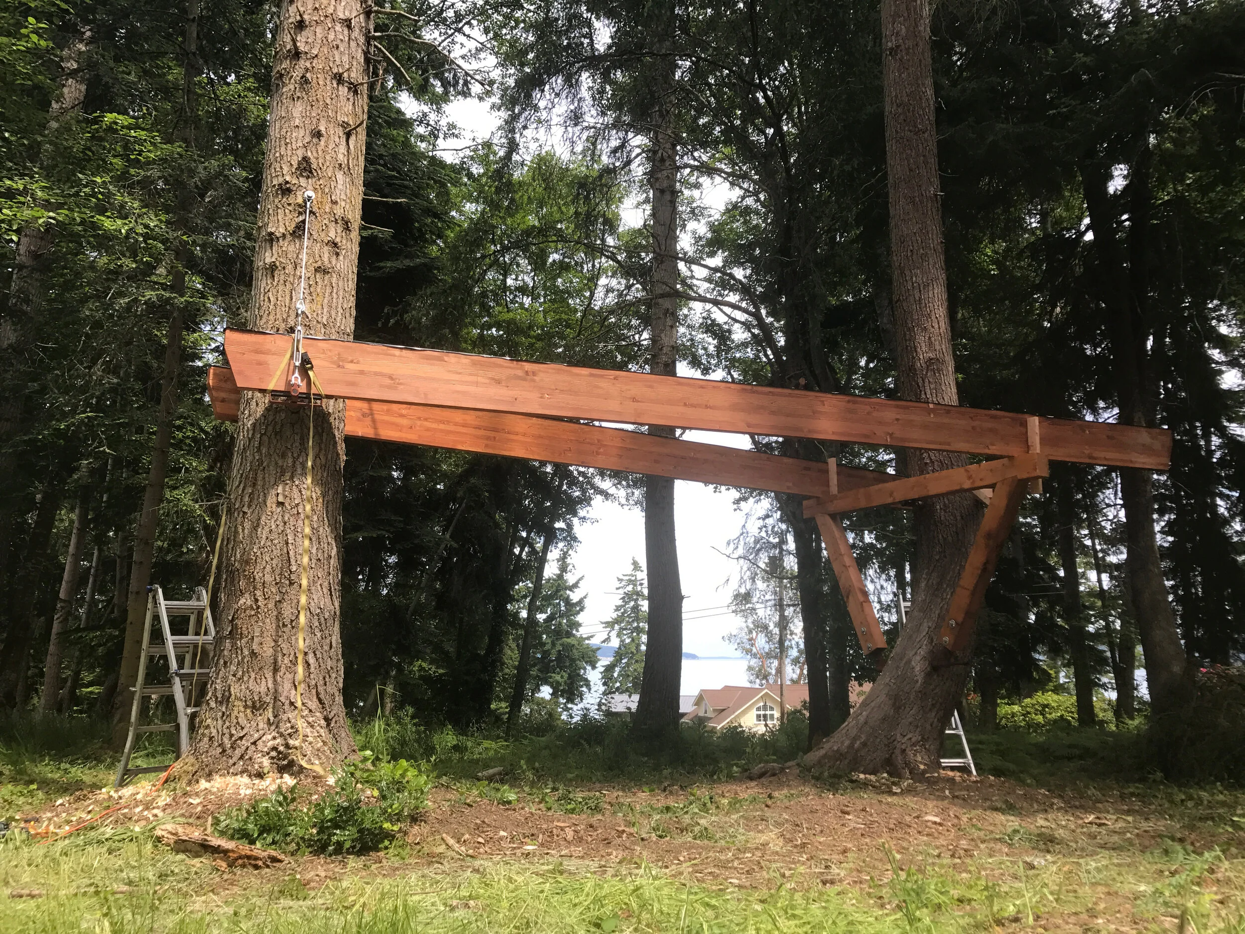 Rasa got in touch with the hope to build a treehouse on his family’s property near Puget Sound. On the property was a Pan-Abode cabin, but with two bedrooms the extended family was finding it too small. Rather than build another cabin, they decided to build something in the trees for both adults and kids to enjoy.