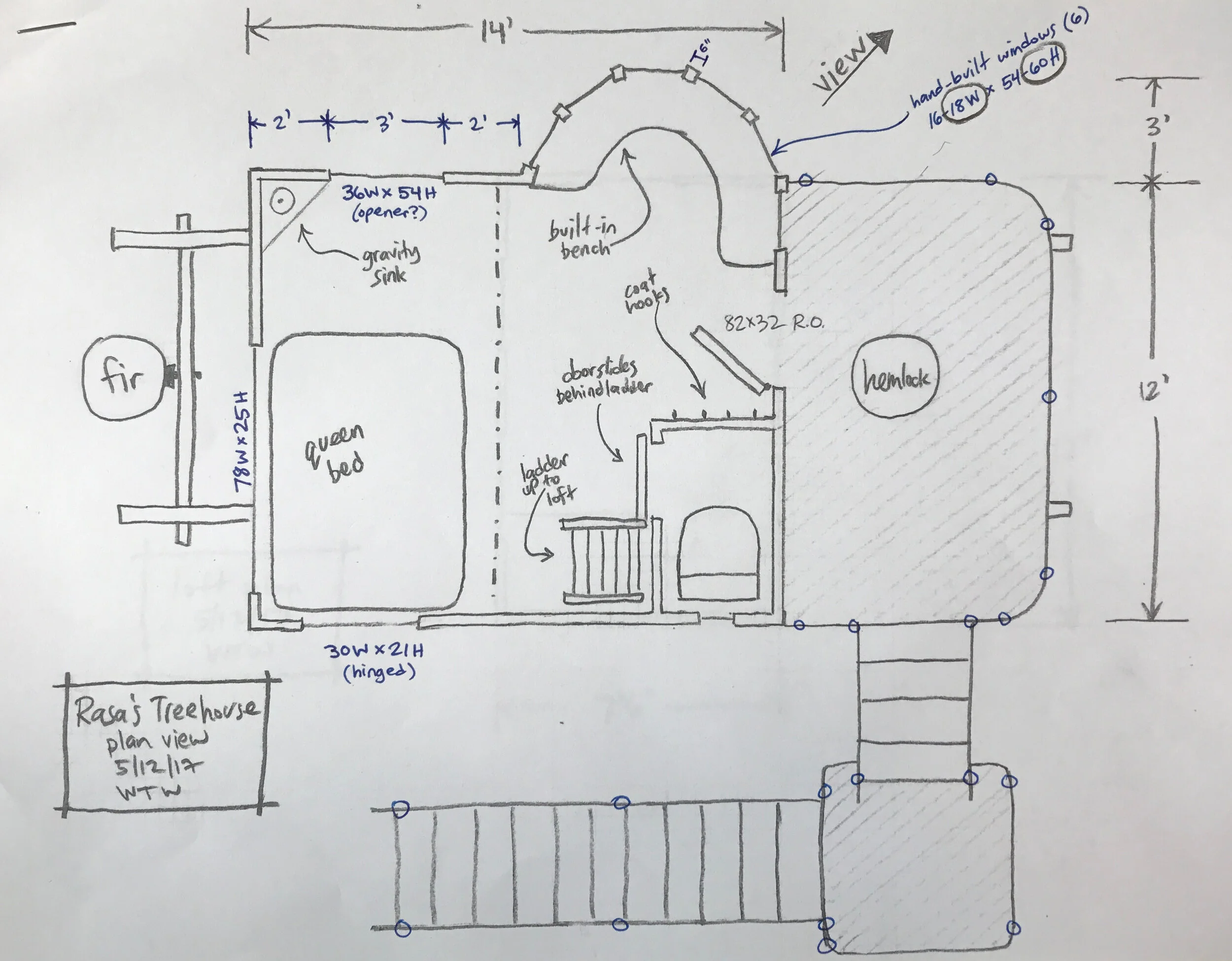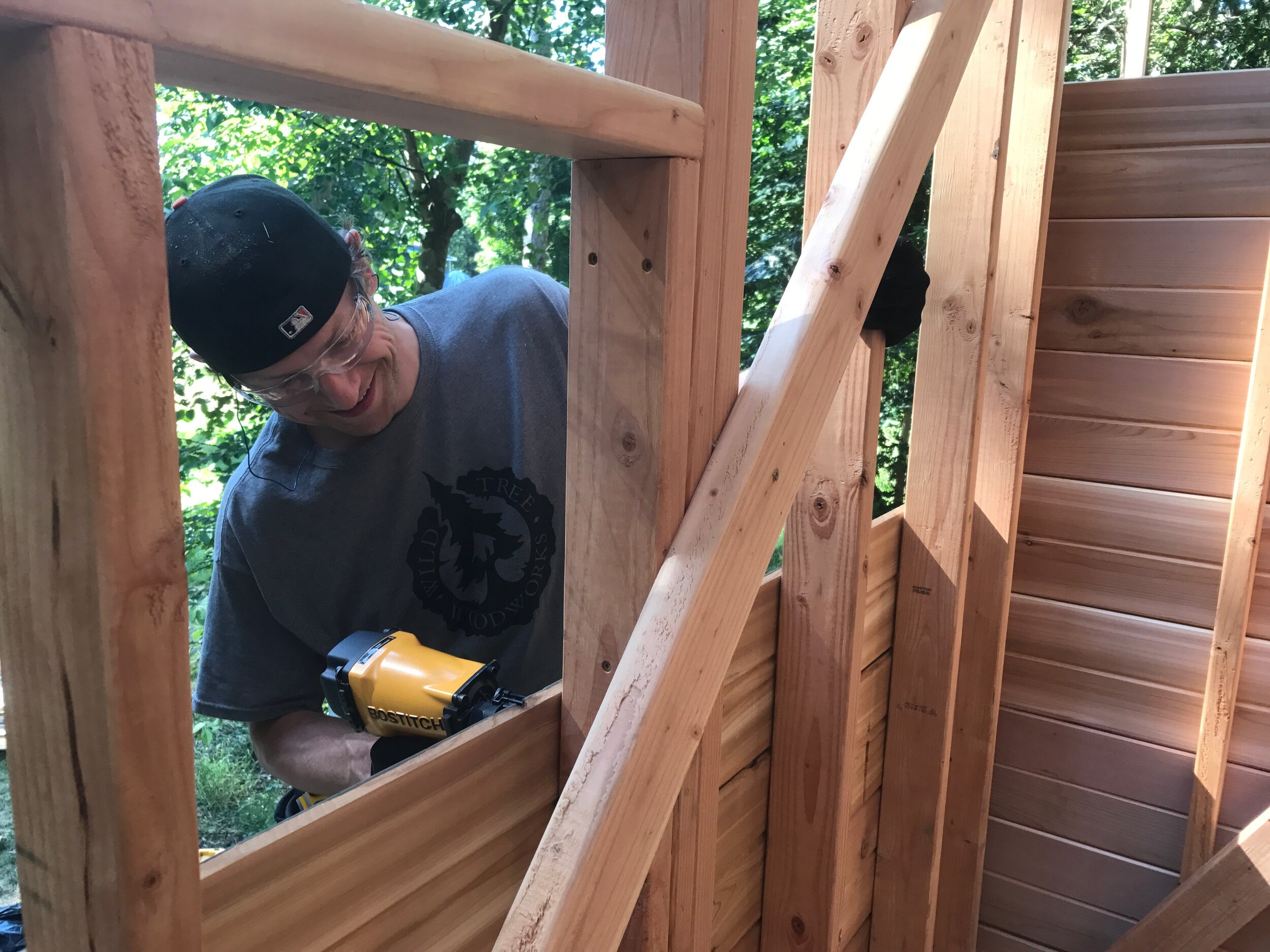 David and Rasa worked together to design a treehouse that fit Rasa’s vision and also fit within the family’s budget. Over several conversations, sketches, and swapping stories about their new baby boys (both David and Rasa were adjusting to a new season of fatherhood during this time) they worked out a design that pleased everyone.